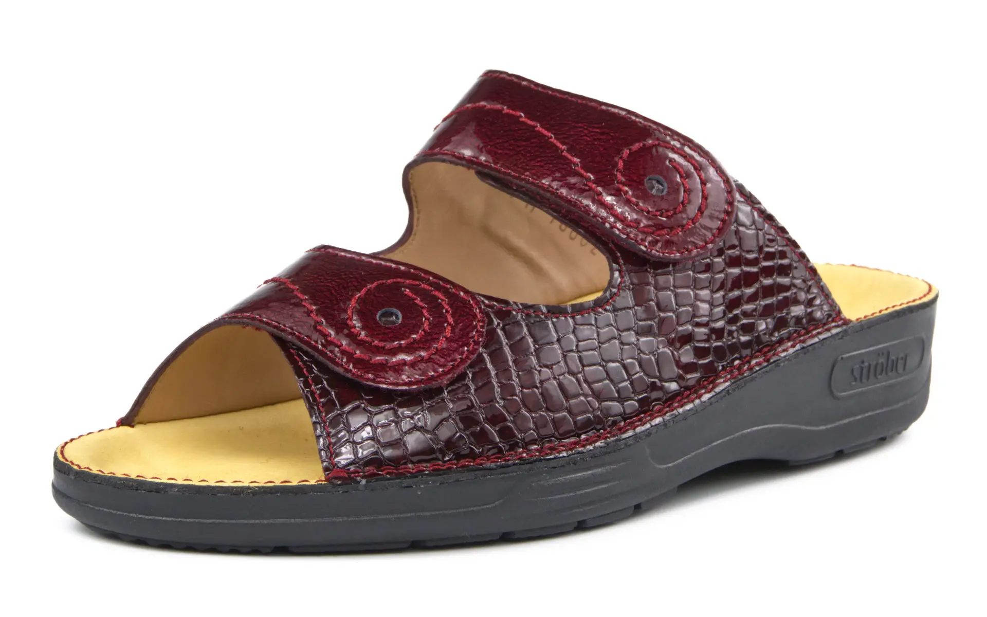 ANNA bedeutet Wellness für Ihre Füße. Hochwertiges Leder, super Passform! Das Damen Orthopanke-Modell wird bestimmt bald Ihr liebster Begleiter. Die von STRÖBER patentierte, spezielle Machart, mit eingenähter Lederdecksohle und dem orthopädisch korrekt in die Laufsohle integrierten Kork-Fußbett, stützt Ihr Fußgewölbe. Sie erhalten ein angenehm befreites und komfortables Tragegefühl. Mit den beiden Klettverschlüssen lassen sich die luftigen Pantoletten perfekt an Ihren Fuß anpassen. So wird ein sicherer und stabiler Halt gewährleistet. Das Sohlenmaterial besteht aus rutschhemmendem PU-Anti-Slip. Das stoßgedämpfte Fersenbett federt Ihre Schritte hervorragend ab. Lernen Sie das Fußbettwunder von STRÖBER kennen!
