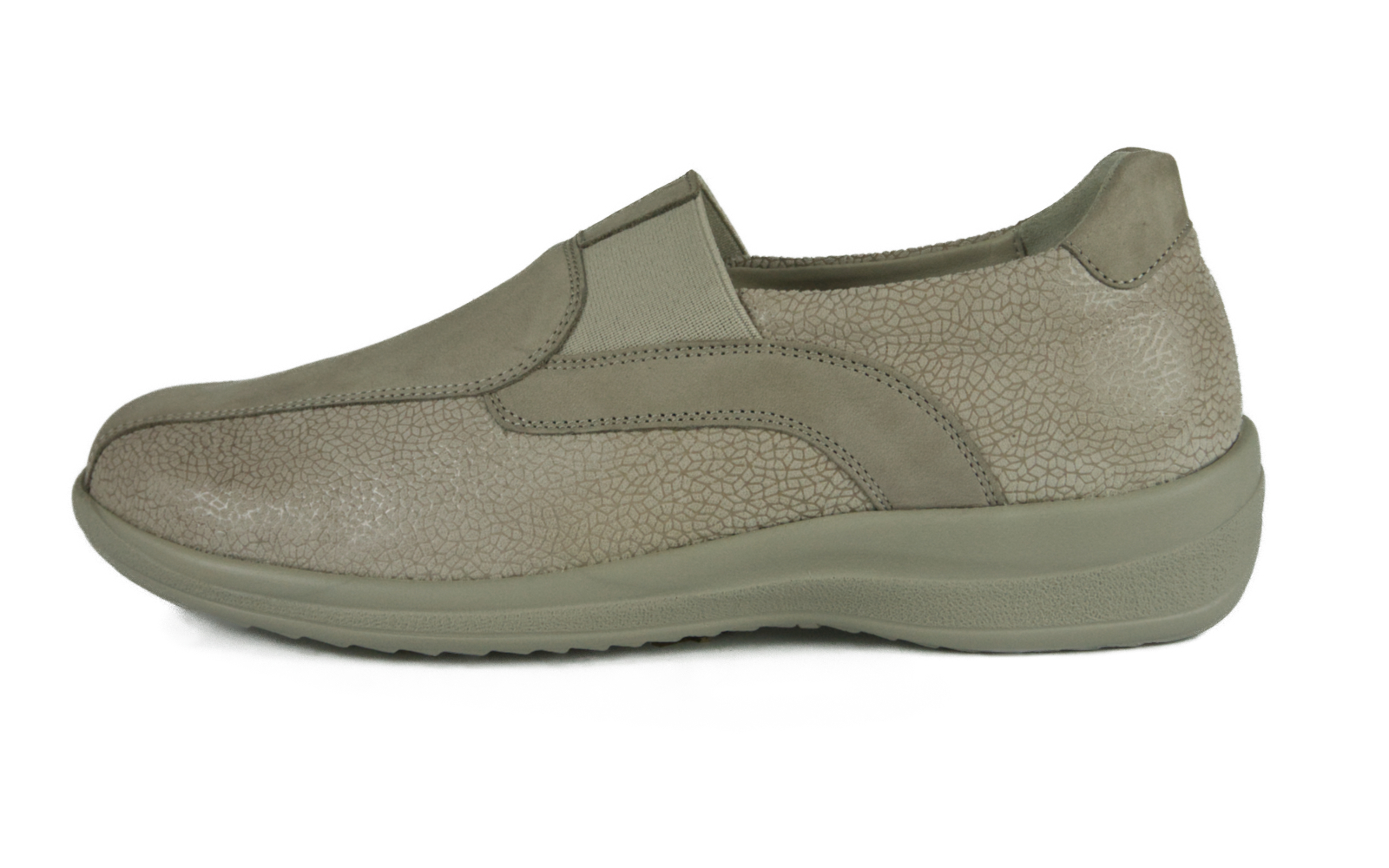 CAMILLA ist ein eleganter Damenslipper in der Weite H. Das Obermaterial aus Nubukleder sorgt für eine weiche Haptik und eine edle Optik. Der beige Farbton verleiht dem Schuh eine zeitlose, vielseitige Ausstrahlung. Das Kalblederfutter bietet hohen Tragekomfort und ein angenehmes Fußklima. Das herausnehmbare Vario-Kork-Latex-Fußbett kann bei Bedarf durch orthopädische Einlagen ersetzt werden. Der praktische Gummizug erleichtert das An- und Ausziehen und sorgt für eine flexible Passform. CAMILLA kombiniert Komfort mit stilvollem Design – perfekt für den Alltag. Ein hochwertiger Begleiter für Damen, die Wert auf Bequemlichkeit und Eleganz legen.